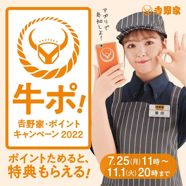 吉野家は7月25日から11月1日20時まで、吉野家公式アプリでポイントキャンペーン「牛ポ!」(吉野家・ポイント.